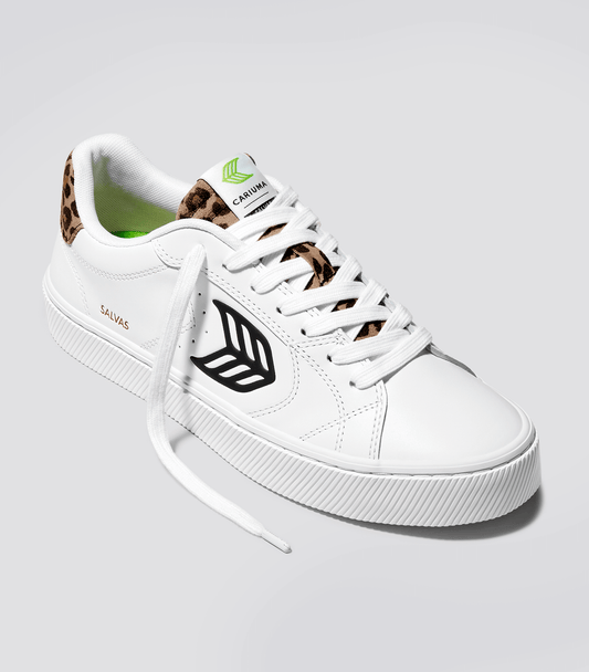 White Smooth Leather/Leopard & Black SALVAS