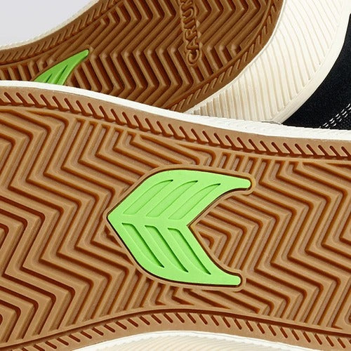 The sticky grip outsole is made with raw natural gum rubber in a classic herringbone pattern so that the shoe moves with you and grips.
