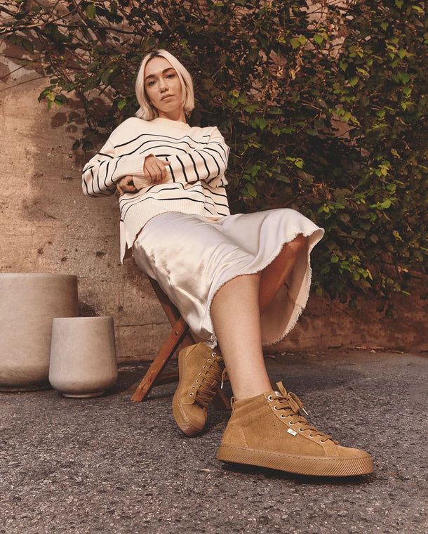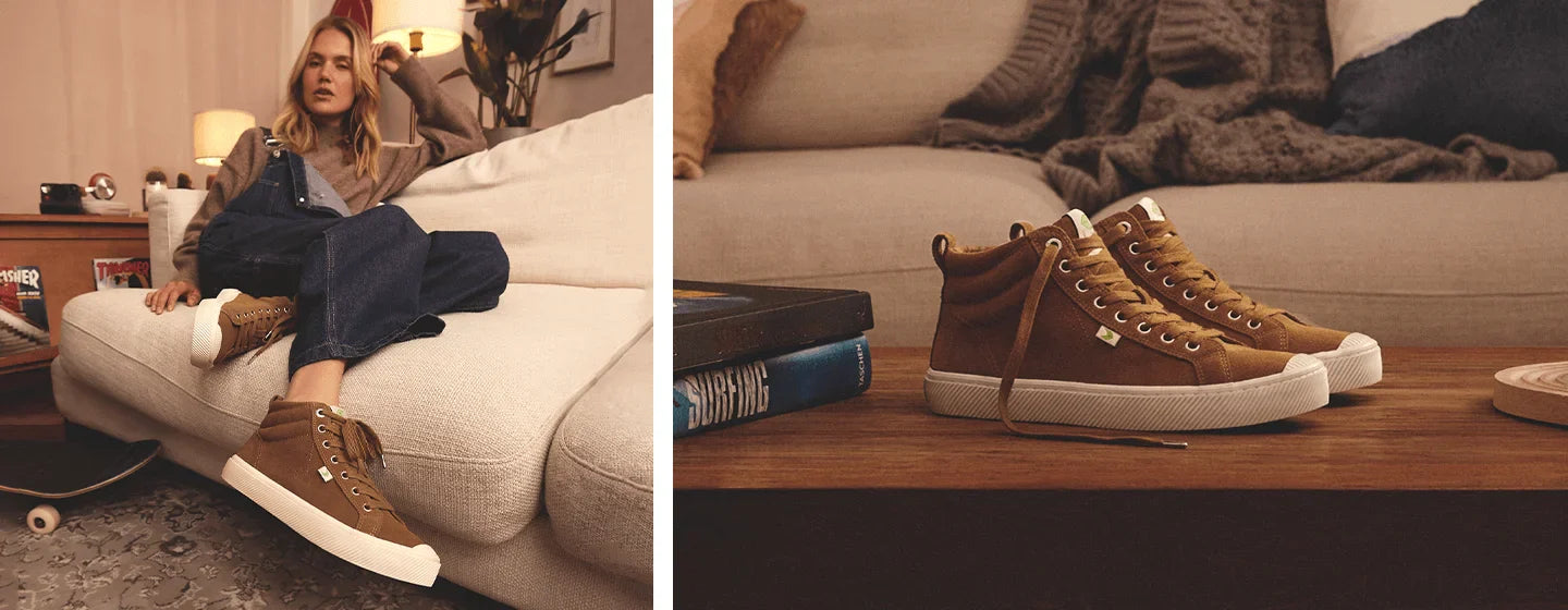 Our signature sneaker has been elevated to high-top status. Meet the OCA High, crafted from high-end, raw materials, it features lightweight cushion technology, the perfectly-weighted rubber sole, and classic cap-toe design. It's the quintessential old-school look made with new-school ethics. Now available in luxe Triple Black Suede.