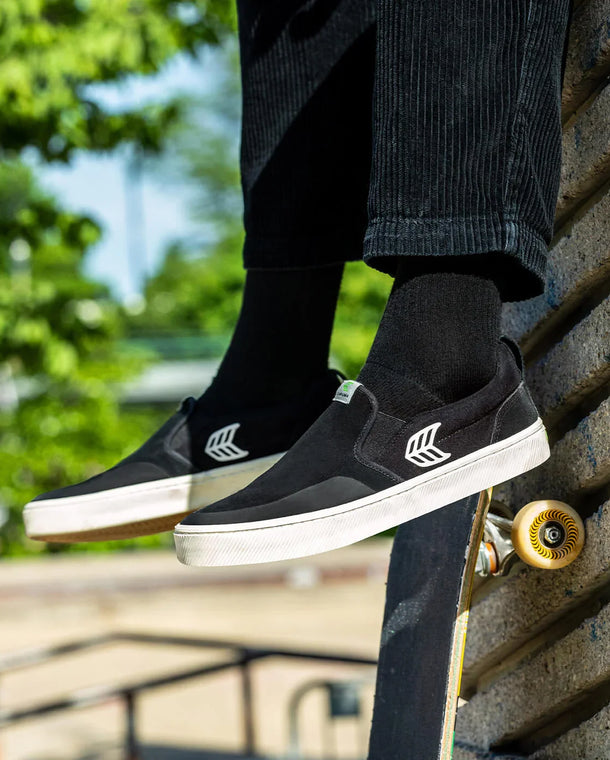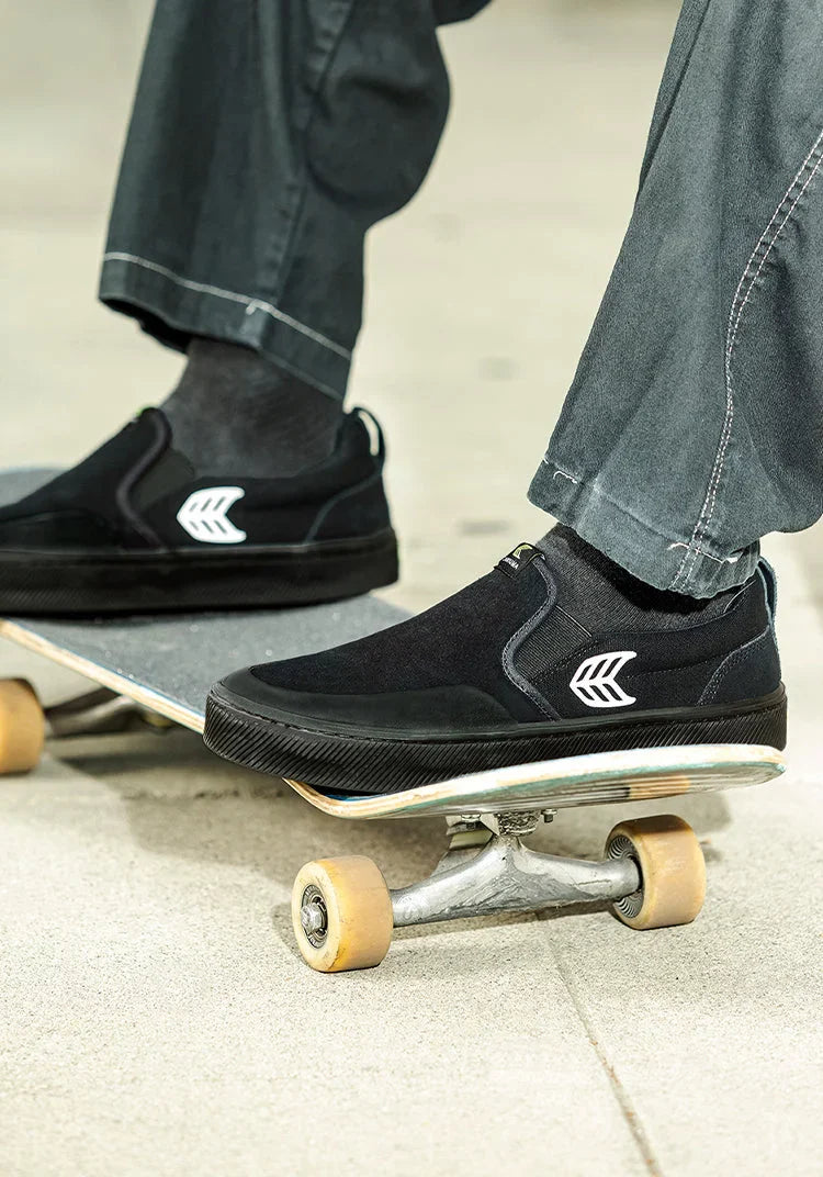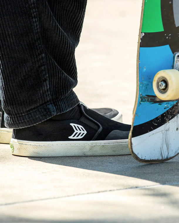 SLIP-ON PRO Black Suede and Canvas Ivory Logo Sneaker